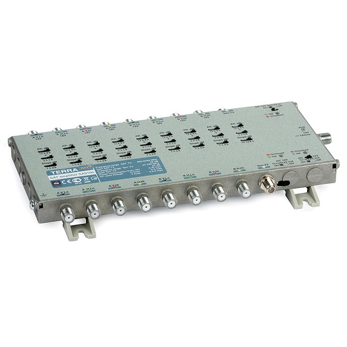Zesilovač Terra SA-501 je navržen pro zesílení signálů z QUATTRO konvertoru a terestrický vstup. Použití tohoto zesilovače je určeno pro budování distribučních sítí za použití multiswitch přepínačů.