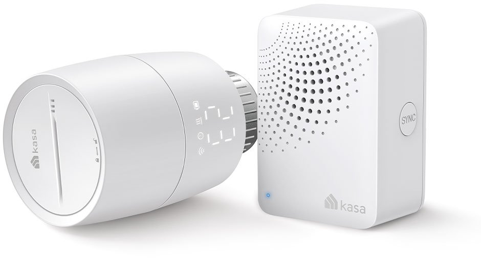Kasa Smart Thermostatic Radiator Valve; SPEC: 1 x Thermostat, 868 MHz, battery powered(2*AA), 5-30? temperature control, M30*1.5mm connector, LED Display; FEATURE: Kasa smart app, Kasa IoT hub(KH100) required, Voice control with Alexa & Google Home, re..