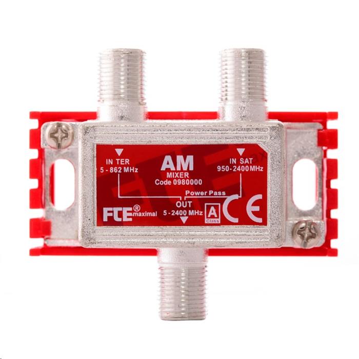 Slučovač (rozbočovač) pozemního (TER) a satelitního (SAT) signálu. SAT průchozí pro napájení a pro ovládací signály LNB. Napájení LNB (SAT větev) max. 500 mA.