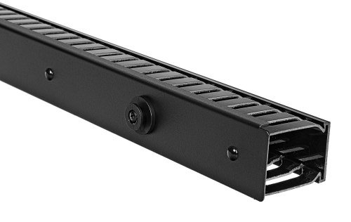 Vertikální uzamykatelný organizér kabelů V-OP48 od společnosti RACK SYSTEMS je kompatibilní se skříněmi řady SS (DATA CENTER). Organizér je vyroben z kovu a plastu.