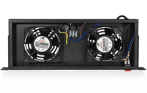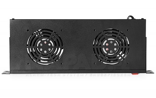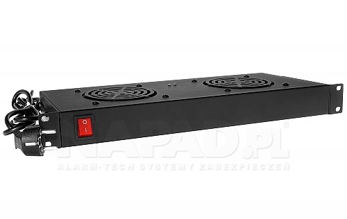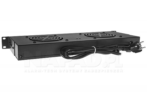 Police se dvěma ventilátory od společnosti Rack Systems. Ventilátor zajišťuje proudění vzduchu uvnitř stojanu a udržuje optimální teplotu odváděním tepla z instalovaného zařízení. Napájení se připojuje pomocí přiloženého kabelu.