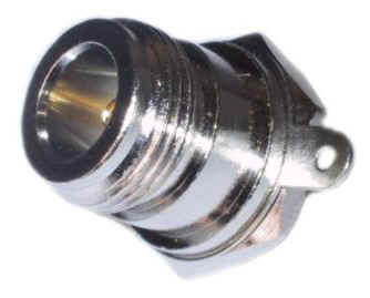 N female konektor s možností instalace do panelu pomocí 2 šroubků a maticí z druhé strany.