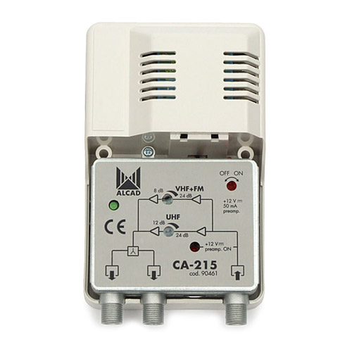 Vnitřní zesilovač Alcad CA-215 (FM/VHF/UHF - 22dB, 12V)