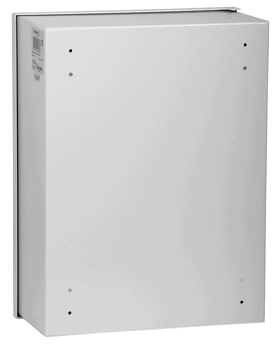Vodotěsnou instalační skříňku s rozměry 250/310/145 mm je třeba umístit na zeď nebo sloup. Skříňka má 4 montážní otvory. Na zadní stěně uvnitř skříně je snadno oddělitelná montážní deska s velikostí 210x260 mm.