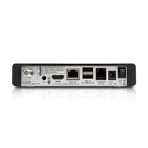 V konektorové výbavě je konektor LAN pro síťový přístup. Pro připojení k televizi má digitální HDMI i starší kompozitní. Rozhraní USB využijete pro externí disky a flashdisky, kam uložíte vysílané pořady nebo si přehrajete svou vlastní multimediální sbírku či používáte jednoduchým způsobem funkci TimeShift. Spolehlivé dekódování zaručí CI modul.