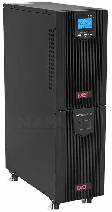 UPS10KV-T-ON je profesionální značka záložního zdroje EAST, která umožňuje komplexní 24hodinovou ochranu elektrického zařízení. Charakteristickým rysem UPS je, že v případě výpadku napájení se automaticky přepne na provoz na baterie, čímž podporuje provoz vyhrazených zařízení. Zařízení má vestavěný systém nouzového napájení sestávající se až z 16 baterií 9Ah/12V. Prezentovaný zdroj napájení se vyznačuje velkým zdrojem energie a vysokou hodnotou účiníku, což znamená, že tento zdroj může úspěšně poskytovat komplexní ochranu velkému počtu zařízení při zachování vysoké účinnosti. Rychlou a bezproblémovou komunikaci se zařízením zajišťují použité konektory USB a RS-232 a port použitý pro přepínač EPO umožňuje připojení napájení k systému požární ochrany. Tělo z masivního kovu zajišťuje správné oddělení součástí a jeho moderní design usnadňuje umístění UPS na cílovém pracovišti. Díky své funkčnosti, použitým technologiím a vysoké účinnosti je UPS 6000TON UPS dokonalým doplňkem elektrické instalace a používá se v celé řadě instalačních destinací.