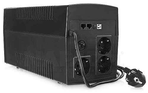Záložný napájecí zdroj UPS1500-LED je typem síťového interaktivního napájení s účinným výkonem 900W a zdánlivým výkonem 1500VA. Jeho vstupní a výstupní napětí je 230V. UPS 1500LED je vybaven 3 zásuvky a dv2 bezúdržbové gelové akumulátory s kapacitou 8Ah/12V, jejich výměna je snadná, rychlá a můžete to udělat sami.