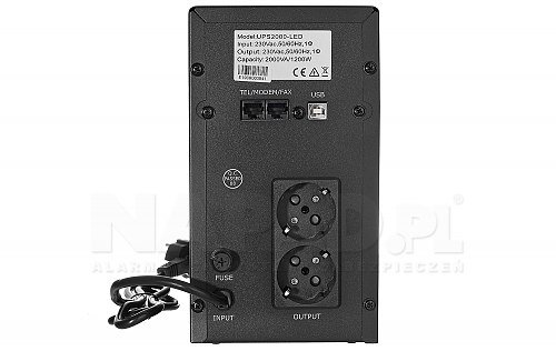 Záložný napájecí zdroj UPS2000-LED je typem síťového interaktivního napájení s účinným výkonem 1200W a zdánlivým výkonem 2000VA. Jeho vstupní a výstupní napětí je 230V. UPS 2000LED je vybaven 2 zásuvky a 2 bezúdržbové gelové akumulátory s kapacitou 9Ah/12V, jejich výměna je snadná, rychlá a můžete to udělat sami.