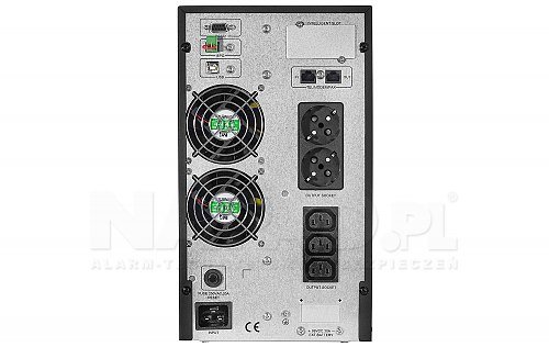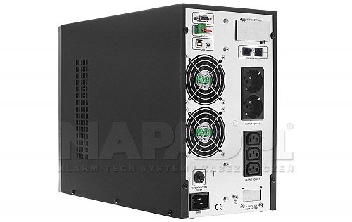 UPS2000-T-ON pracuje v režimu online. Bez ohledu na stav elektrické sítě UPS nepřetržitě napájí připojená zařízení z energie uložené ve vnitřních bateriích. Je vybaven přehledným LCD displejem, který poskytuje nejdůležitější informace o stavu systému, několika napájecími výstupy, fyzickou přepěťovou ochranou RJ45 (in/out) a rozhraním USB a RS-232 pro připojení k počítači a správu prostřednictvím aplikace UPSmart. Výhodou UPS je schopnost generovat sinusové napětí, vestavěný jistič EPO a kompatibilita s počítačovými zdroji vybavenými aktivním obvodem korekce účiníku APFC.