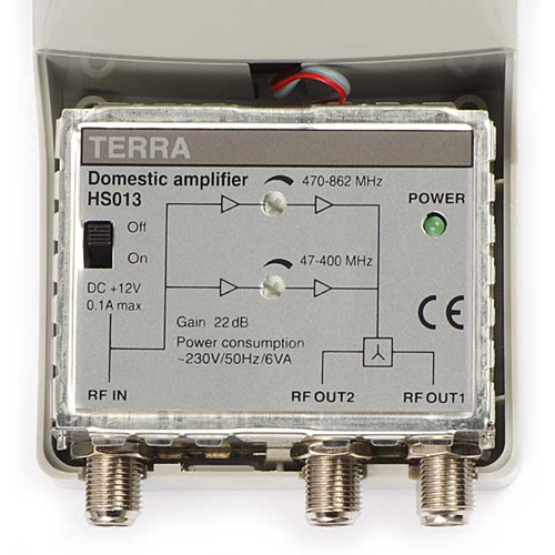 Zesilovač Terra HS-013 (1/2, 12V, VHF/UHF)